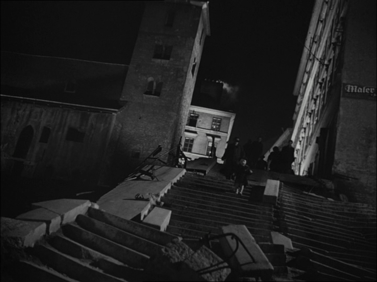 This haphazard approach to the actual geography of the city is also seen elsewhere. When Martins arrives to talk to the landlord, only to find him dead and a mischievous young boy blaming him for the murder, he and Anna run around the corner, past a church and down a staircase. Again, the actual locations of the apartment and the church are quite far apart, but it’s easy to understand why they chose this location when you consider the striking composition of the resulting shot.