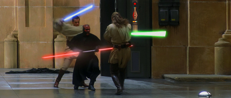 Is The Phantom Menace my favorite film in the franchise? No – nowhere close (If pushed I think I would say The Empire Strikes Back). But it is probably the film – alongside re-release screenings and VHS copies of Episode IV – that served first and foremost as the formative gateway, the genesis of my fandom as a whole. It might also be partly responsible for my love of and interest in film a whole – I have vivid memories of using my Dad’s camcorder to film an homage/re-telling of The Phantom Menace with my (reluctant) extended family, splicing in scenes from the VHS copy of the film alongside footage of a family member draped in a black cape pretending to be Darth Maul.